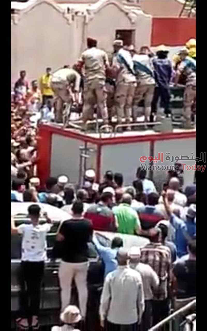 شيع الالاف من أهالى مدينة المنزلة جثمان الشهيد محمود محمد عبدالحميد قهوة في هجوم إرهابى في بئر العبد، شمال سيناء يوم أمس.