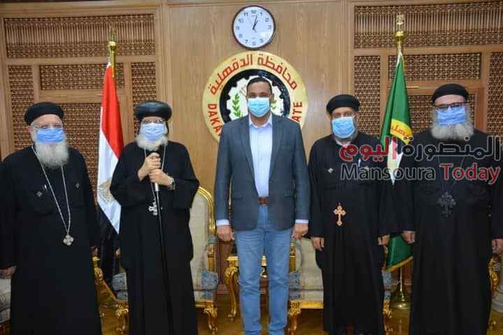 وفد الكنيسة القبطية بالمنصورة يقدم التهنئة بعيد الأضحى المبارك لمحافظ الدقهلية