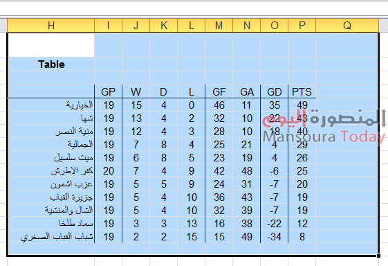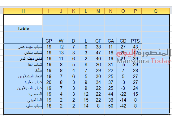جمع شباب ميت غمر 43 نقطة في صدارة المجموعة بينما يحتل شباب بلقاس المركز الثاني برصيد 42 نقطة بعدما احتسبت لجنة المسابقات نتيجة لقاء شباب بلقاس مع شباب السنبلاوين 2/0 لصالح بلقاس.