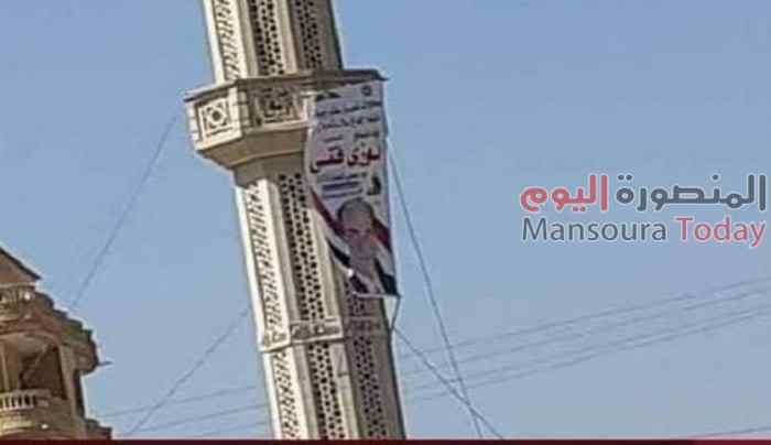تداولت مواقع التواصل الاجتماعي صورة للافتة على مسجد تابع لاحد المصانع الخاصة بقرية “شيوة “مركز أجا بمحافظة الدقهلية، وهو ما تسبب في استياء من استخدام دور العبادة في الدعاية للمرشحين.