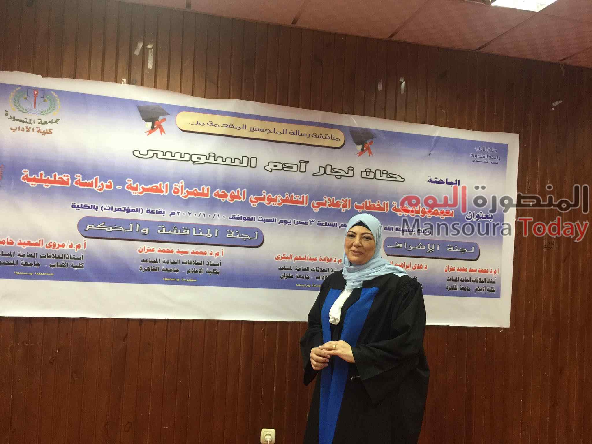 ناقشت الباحثة حنان نجار آدم السنوسي، رسالة ماجستير في قسم العلاقات العامة كلية آداب جامعة المنصورة بعنوان “سيميولوجية الخطاب الإعلانى التليفزيونى الموجه للمرأة المصرية دراسة تحليلية”