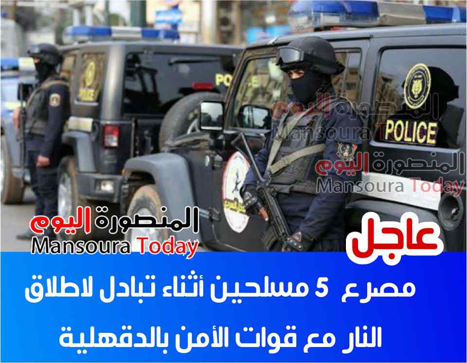 لقى خمسة مسجلين خطر والمطلوبين أمنيا مصرعهما في تبادل إطلاق النار مع الشرطة وذلك خلال حملة أمنية مكبرة علي مركز المنزلة بمحافظة الدقهلية.