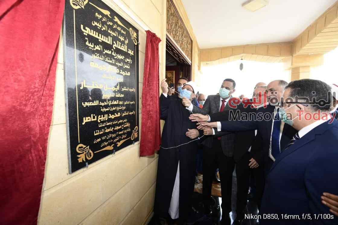 قام الدكتور محمد مختار جمعة وزير الاوقاف،والدكتور عبد الهادى القصبى شيخ مشايخ الطرق الصوفية اليوم الجمعة بزيارة لمدينه جمصة بمحافظة الدقهلية بمرافقة الدكتور أيمن مختار محافظ الدقهلية،وقد استهدفت الزيارة تفقد وافتتاح عدد من المشروعات والكليات الجديدة بجامعه الدلتا للعلوم والتكنولوجيا بجمصة، حيث استقبلهم خلالها الدكتور محمد ربيع ناصر رئيس مجلس امناء جامعة الدلتا ، والدكتور يحى المشد رئيس الجامعه ، واساتذه كليات جامعه الدلتا ، وقد تضمن برنامج الزيارة، حضور لقاء بمجلس الجامعه وتم خلاله استعراض فيلما تقديميا عن جامعة الدلتا، ونشاتها ومسيرتها فى التعليم الجامعى المتطور والذى يواكب العصر ،كما تفقد الوزير ومحافظ الدقهلية وشيخ مشايخ الطرق الصوفية كليات الجامعه، ومنها كلية طب الفم والاسنان كأحد الكليات الجديدة التى اضيفت الى الكليات بالجامعه ، وكذا زيارة كليه الطب التى تم افتتاحها مؤخرا، كما افتتح وزير الاوقاف ومحافظ الدقهلية مركز التعليم المستمر وبحوث الاسنان بالجامعه، وقد اشاد محافظ الدقهلية وضيوف المحافظة بالنهضة الكبيرة بجامعه الدلتا مؤكدين انها اضافة متميزة للتعليم الجامعى على ارض الدقهلية و انها تقدم برامج دراسية وتعليمية تواكب احتياجات سوق العمل،وتطبق الاساليب التكنولوجية والعلمية الرصينه فى استراتيجيات التعلم واكتساب المهارات. وخلال الزيارة ثمن محافظ الدقهلية خطه وزارة الاوقاف وجهودها خلال الفترة الماضية لافتتاح عدد كبير من المساجد الجديدة بمحافظات الجمهورية وكان للدقهلية نصيب كبير منها، فيما اكد وزير الاوقاف ان محافظة الدقهلية من المحافظات العريقه علميا وثقافيا وفكريا ولها تاريخ مجيد فى تحقيق الانتصارات التى ترسخ فى الاذهان عظمه وصمود الاجداد فى مواجهة المستعمر، والحفاظ على الوطن.