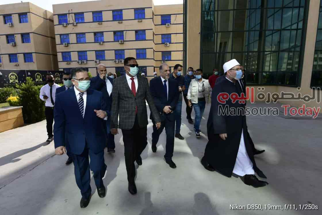 محافظ الدقهلية ووزير الأوقاف وشيخ مشايخ الطرق الصوفية فى زيارتهم لجامعة الدلتا للعلوم والتكنولوجيا بجمصة