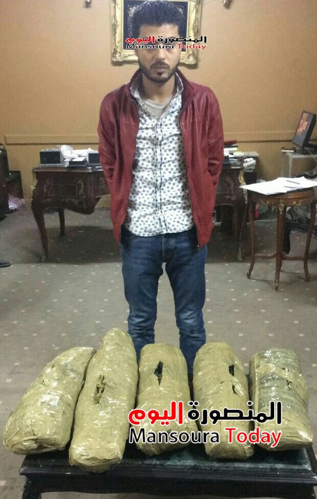 تلقى اللواء مصطفى النمر مدير أمن الدقهلية اخطارا من ضباط مركز بلقاس يفيد بضبط أحمد . إ . ا . وشهرته حمادة الدفاس 29 سنة عاطل ومقيم بقرية المعصرة مركز بلقاس والمسجل شقي خطر تحت رقم 2108 فئة [ ب ] مخدرات وبحوزته عدد 5 لفافات كبيرة الحجم لنبات البانجو المخدر وزنت 15 كجم ومبلغ مالي 1005 جنيه وهاتف محمول ودراجة بخارية بدون لوحات معدنية وبمواجهته إعترف بحيازته للمواد المخدرة بقصد الإتجار .