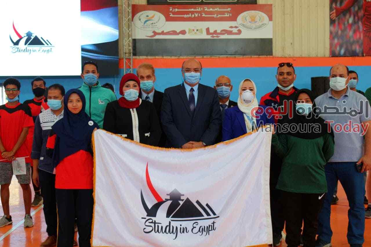 افتتح فعاليات اليوم الرياضي الأول للطلاب الوافدين بجامعة المنصورة للعام الجامعي الجديد تحت شعار ادرس فى مصر. وذلك تحت رعاية الدكتور أشرف عبد الباسط رئيس جامعة المنصورة وبحضور الدكتور محمد عطية البيومى نائب رئيس الجامعة لشئون التعليم والطلاب، الدكتورة رشا كمال مدير الإدارة المركزية للوافدين،الدكتور حسام مصطفي المشرف على إدارة الوافدين،الاستاذ إيهاب رمضان مدير الأنشطة الطلابية بالادارة المركزية، سحر العراقي مدير إدارة الوافدين. تضمنت فعاليات اليوم مسابقات رياضية للطلبة والطالبات مارثون دراجات، كرة طائرة، كرة سلة، كرة قدم خماسي، تنس طاولة وأكد الدكتور محمد عطية خلال افتتاح اليوم حرص الجامعة على دعم الطلاب الوافدين الدارسين بمختلف الكليات والتخصصات فهم سفراء لجامعة المنصورة بدولهم كما تحرص الجامعة على توفير كافة الأنشطة الرياضية حيث تتواجد بالجامعة القرية الأولمبية والتى يتوافر بها كافة الملاعب لممارسة الأنشطة الرياضية المختلفة وعبرت الدكتورة رشا كمال عن سعادتها بتواجدها بجامعة المنصورة ومشاركتها الطلاب الوافدين فعاليات اليوم الرياضى الأول خلال العام الدراسي ٢٠٢٠-٢٠٢١ م، واشارت ان الجامعة بيت للطلاب الوافدين من الجنسيات المختلفة.