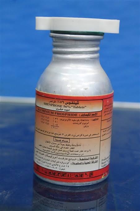 قرص کيماوي يستخدم لحفظ الغلة وذلك لمرورها بحالة نفسية سيئة ما أدى إلى حدوث إصابتها ، ولم تتهم أحدا في ذلك.