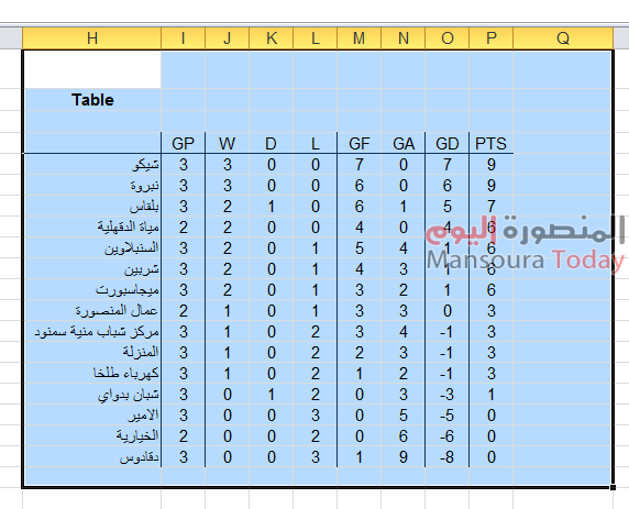 فوز نبروة والمنزلة ومياة الدقهلية وشربين وعمال المنصورة وشيكو وبلقاس بالقسم الثالث