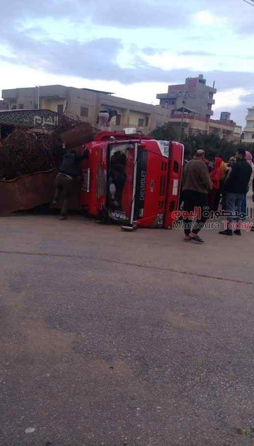 شهد طريق دكرنس_المنصورة بمحافظة الدقهلية حادث انقلاب سيارة نقل محملة بالحديد أمام كوبري ميت الحلوج حيث تلقي اللواء رأفت عبد الباعث مدير أمن الدقهلية إخطارا من اللواء مصطفى كمال مدير المباحث بالمديرية يفيد وصول بلاغ لمركز شرطة دكرنس يفيد وقوع حادث انقلاب سيارة نقل محملة بالحديد أمام كوبري ميت الحلوج التابع للمركز. وعلي الفور انتقل ضباط المركز إلي موقع البلاغ وتبين انقلاب سيارة نقل محملة بالحديد ولم يسفر عن إصابات وتم تحرير محضر بالواقعة وجاري رفع السيارة والحديد وإعادة فتح الطريق.