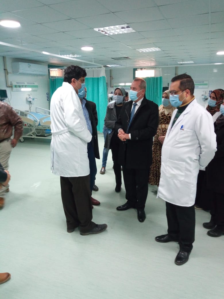 و قام بجولة تفقدية على بعض اقسام المستشفى منها الاستقبال والعيادات الخارجية والعمليات وذلك للاطمئنان على سير العمل والتأكد من جاهزية المستشفى لمواجهة الموجة الثانية لفيروس كورونا كما أكد على توافر الادوية والمستلزمات لضمان تقديم الخدمة الطبية الجيدة لجميع اهالي الدقهلية.