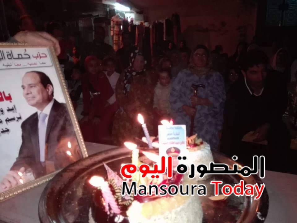 قام عدد من أهالي قرية منية سندوب مركز المنصورة، بمحافظة الدقهلية،اليوم بتنظيم احتفالية بعيد ميلاد الرئيس عبد الفتاح السيسي .