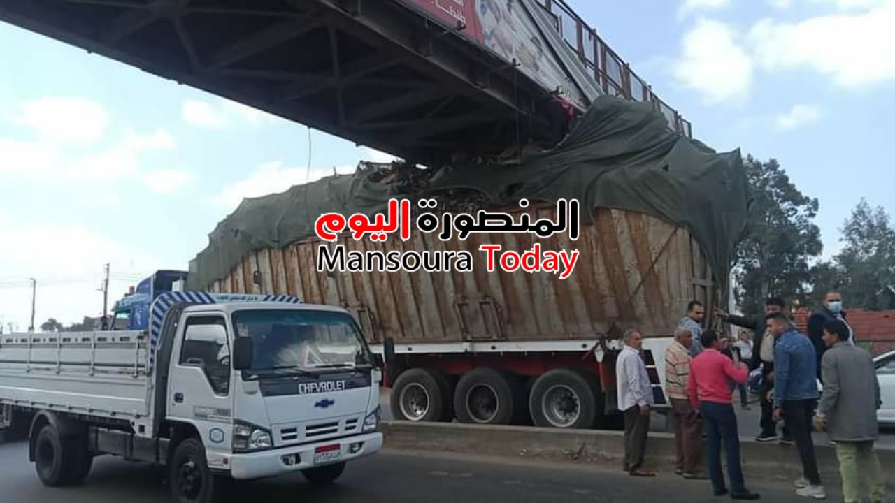 شهد طريق أجا المنصورة إصطدام سيارة نقل “مقطورة” بجسم كوبرى مشاة بالقرب من قرية نوسا الغيط.