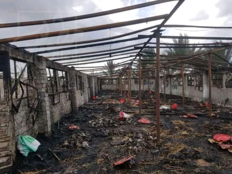 أسفر عن ذلك إحتراق سقف المزرعة ونفوق عدد “٦٠٠٠ دجاجة عمر ٠ ٤ يوم ” ، ولم ينجم عن ذلك ثمة إصابات بالأرواح البشرية .