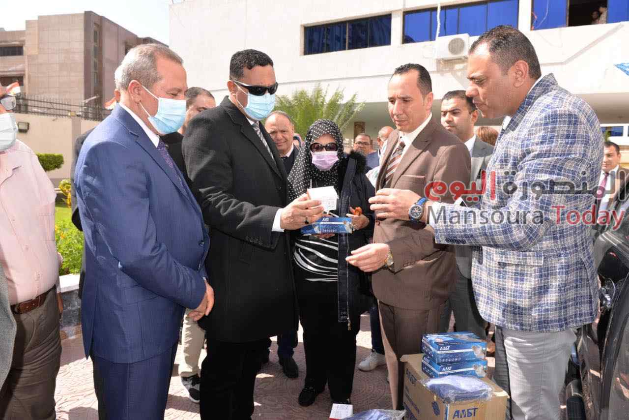 تبرع الاستاذ محمد جمعة منصور ، مؤسس مصانع فرايداي للأيس كريم بمصر والشرق الأوسط، صباح اليوم، لمديرية الصحة بالدقهلية بعدد من الأدوات والمستلزمات الطبية الضرورية لدعم المستشفيات والوحدات الصحية بمحافظة الدقهلية. ويأتي ذلك برفقة الدكتور أيمن مختار، محافظ الدقهلية، والدكتور سعد مكي، وكيل وزارة الصحة بالدقهلية، والفنانة عفاف شعيب، والاستاذ منصور جمعه مدير الحركه بمصنع جمعة، والدكتور عبدالناصر المرسي، مدير التطوير والجودة، والاستاذة نهال السكري مديرة الاعمال بالمصنع، وهاني رضا بركات، مدير المبيعات بقطاع الجملة، والاستاذ محمد العيوطي مدير المكتب، و الاستاذ محمد حامد مدير المبيعات في قطاع التجزئة، والاستاذ منتصر عبدالكريم مدير عام المصنع. وأكد ” جمعة” بناء على توجيهات الرئيس عبد الفتاح السيسي، رئيس الجمهورية، بضرورة دعم أجهزة الدولة وتقديم كافة المساعدات وتحقيق مطالب واحتياجات المواطنين، وتقديم خدمات متميزة لهم في مقدمتها الخدمات الصحية بنطاق محافظة الدقهلية، مشيرا إلى أهمية المجتمع المدني للنهوض بالدولة. وأشار ” محافظ الدقهلية ” إلى أن مشاركات المجتمع المدني في الدقهلية نموذج فريد يتميز به ابناء المحافظة حيث تتنوع وتتعدد مشاركتهم المادية والعينية فى تنفيذ المشروعات الخدمية للارتقاء بمستوى الخدمات المقدمة للمواطنين وتقديم خدمات حكومية متميزة في كافة المجالات فضلا عن دعم الفئات الاكثر احتياجا. وأمر الدكتور أيمن مختار محافظ الدقهلية، بتوزيع نصف مليون كمامة طبية و 2000 جهاز قياس الأكسجين وضربات القلب، و 25 الف جوانتي لاتكس و 4000 جاون و 1000 بدلة عزل طبي و 3 طن كلورمركز، و 500 الف كمامة طبية”، تبرع بها الأستاذ محمد جمعة، صاحب مصنع فرايداي للآيس كريم، وذلك لصالح مديرية الصحة بالدقهلية دعما لمواجهة فيروس كورونا في موجتها الثانية حرصا على صحة وحياة المواطنين والمترددين على المستشفيات.