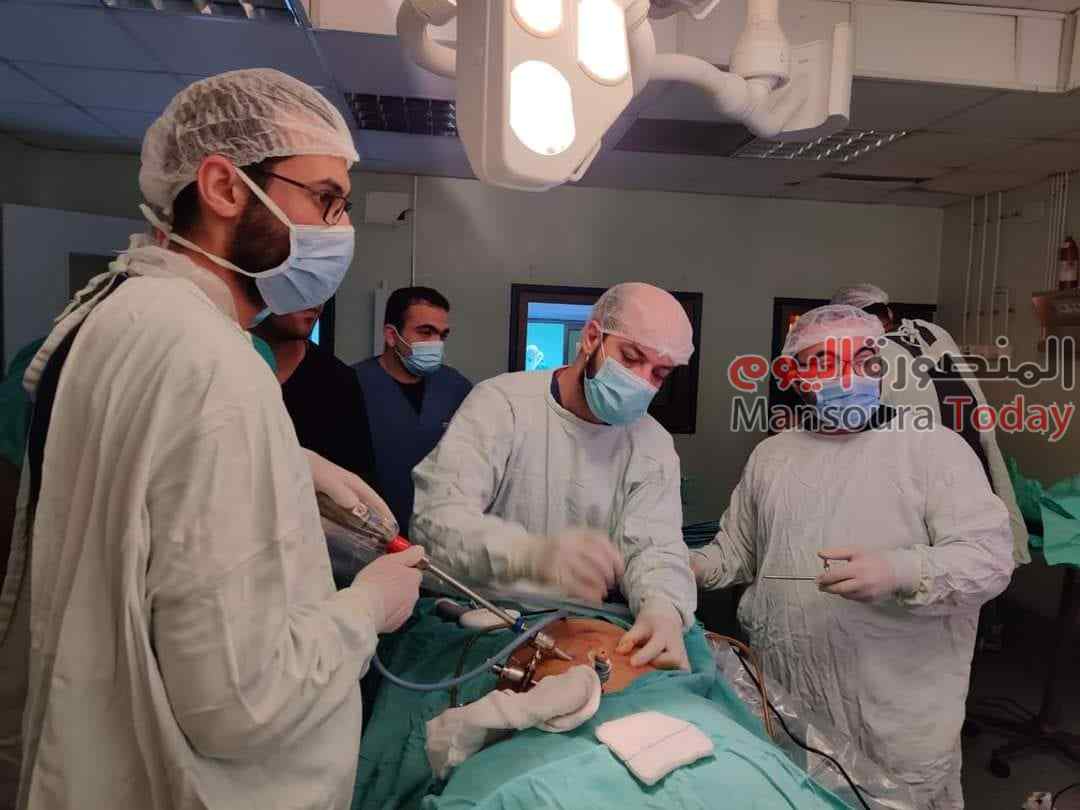 أعلن الدكتور سعد مكي وكيل وزارة الصحة بالدقهلية عن نجاح فريق طبي في إجراء جراحة نادرة ودقيقة بواسطة المنظار الجراحي لمريضة تعاني من متلازمة نادرة الحدوث بمستشفى المنصورة الدولى وهي تحدث لكل 50 ألف شخص. حضرت المريضة للمستشفى وهي تعاني منذ عشرات السنين بآلام في البطن بعد الأكل وغثيان وقئ والخوف من تناول الطعام ونزول بالوزن حيث تمكن الفريق الطبي من اطباء الجراحة بالمستشفى الدولي من تشخيص حالتها بالاشعة المقطعية بالصبغة حيث اظهرت الاشعة وجود شريط نسيج عضلي ضاغط على الشرايين المغذية للمعدة والاثني عشر وهو ما يعرف بمتلازمة الرباط المقوس وتم تجهيزها للعمليات. حيث تم اجراء قطع للنسيج العضلي مع المحافظة على الأوعية الدموية (الشريان الاورطى المغذي للمعدة والامعاء ) واعادة الشرايين لوضعها الطبيعي. وخرجت المريضة من العمليات وبدء الشرب بعد 12 ساعة من خروجها مع ملاحظة اختفاء الالم والاعراض الاخرى وخرجت المريضة من المستشفى بحاله مستقرة وجيده بعد 24 ساعه من الجراحة. كما تقدم وكيل وزارة الصحة بالشكر لإدارة المستشفى والاطقم الطبية والتمريضية والاطقم المعاونة لهم متمنيا لهم المزيد من التقدم والازدهار والنجاح وتكون الفريق الطبى من الدكتور إبراهيم شلبي رئيس قسم الجراحة العامة بمستشفى المنصوره الدولي. بالتعاون مع الدكتور حسام الدين حامد مدرس جراحه الجهاز الهضمي كلية الطب جامعة المنصورة، والفريق الجراحي الدكتور حسام الدين حامد، والدكتور احمد عبد الغني والدكتور اسلام عبدالهادي، وفريق التخدير الدكتور حاتم فريد وفريق التمريض محمد سعد وباسم أحمد.