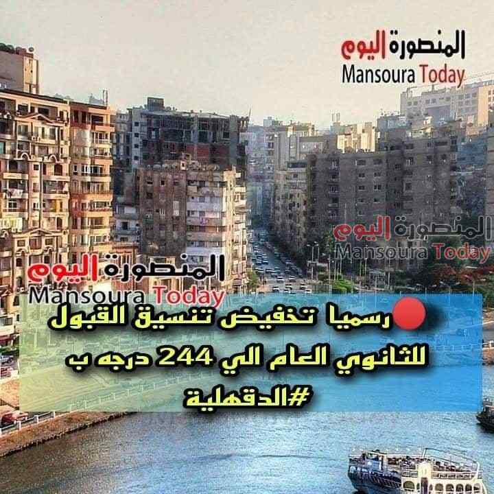 محافظ الدقهلية يوافق علي تخفيض تنسيق القبول للثانوي العام الي 244 درجة
