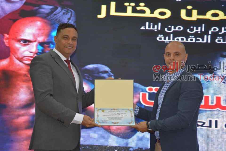 وفي كلمته خلال الحفل أكد ” محافظ الدقهلية أن الرئيس السيسي وجه برعاية وتكريم أبطال مصر رياضياً وعلمياً مشيرا أن الدقهلية تفخر اليوم بتكريم أحد الأبطال العالميين وإبنا من أبناء القوات المسلحة المصرية الباسلة.