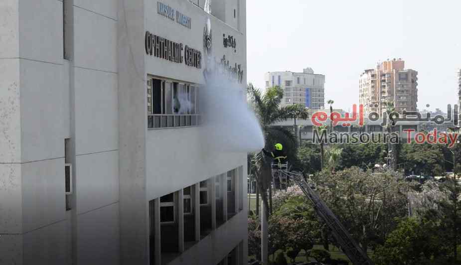 محاكاة لمكافحة حريق والإخلاء الآمن لمرضى مركز طب وجراحة العيون بجامعة المنصورة
