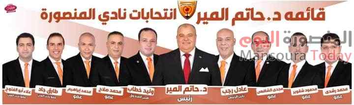 ينظم نادي المنصورة الرياضي حفلا كبيرا الليلة في ختام الدورة الرياضية الكروية التي احتضنها النادي على مدار الأسابيع الماضية تحت رعاية الدكتور حاتم المير رئيس نادي المنصورة الرياضي، وبحضور جميع أعضاء قائمة المير بانتخابات مجلس إدارة النادي المقرر لها الثامن من اكتوبر القادم. يبدأ الحفل في تمام الساعه الثامنة مساءا بمقر النادي بشارع بورسعيد،و يتضمن الحفل ندوة دينيه وفنية وتكريم لقدامى اللاعبين و المدربين ورؤساء الاندية السابقين ورموز النادي. يحضر الحفل اعضاء قائمة المير وهم : الدكتور حاتم المير رئيس. الاستاذ عادل رجب نائب. الاستاذ وليد خطاب امين صندوق. الاستاذ محمد صلاح عضو. الاستاذ مجدي الشافعى. الاستاذ محمدابراهيم عضو. الاستاذ محمود شقوير عضو. الاستاذ محمد رشدي عضو. الدكتور علاء ابوالفتوح عضو. الدكتور طارق جاد عضو.
