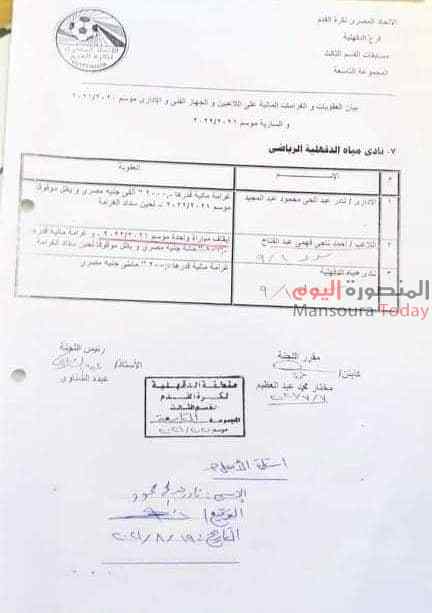 احتساب نتيجة مباراة الخيارية ومياه الدقهلية لصالح الاول بنتيجة ٢-٠ لمشاركة مياه الدقهلية للاعب موقوف من نهايه الموسم الماضي.