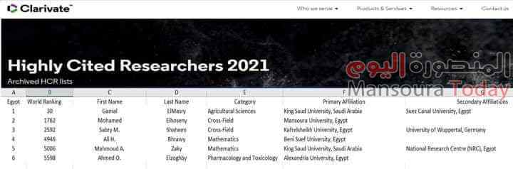 أستاذ بجامعة المنصورة من ضمن اعلي العلماء تأثيرا في قائمة Clarivate العالمية