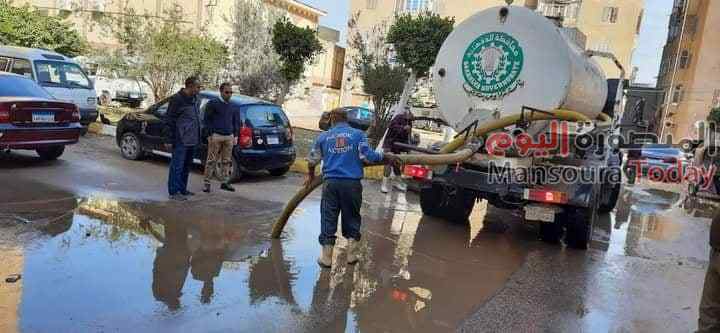 وأشار محافظ الدقهلية بأن يتم الدفع بسيارات الكسح والمعدات التابعة للوحدات المحلية بالتنسيق والتعاون مع قطاعات شركة مياة الشرب والصرف الصحى بنطاق المحافظة حال وجود تجمعات للمياه بالطرق و الشوارع وشفطها وكسحها أولا بأول لتيسير حركة السيارات والمواطنين وعدم وجود تكدس واختناقات للسيارات.