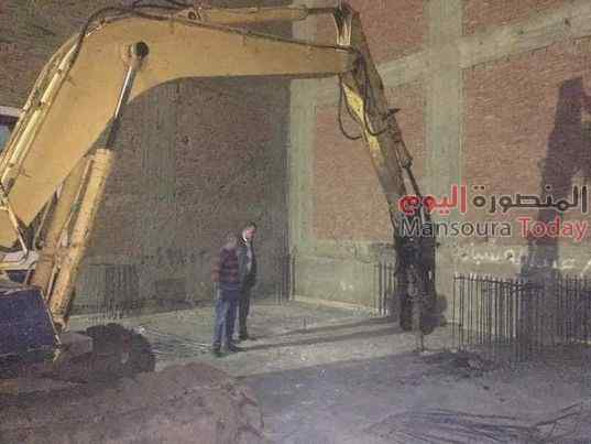 بالصور أيقاف الاعمال وازالة لبشة خرسانية مخالفة بحملة بنطاق حى غرب المنصورة
