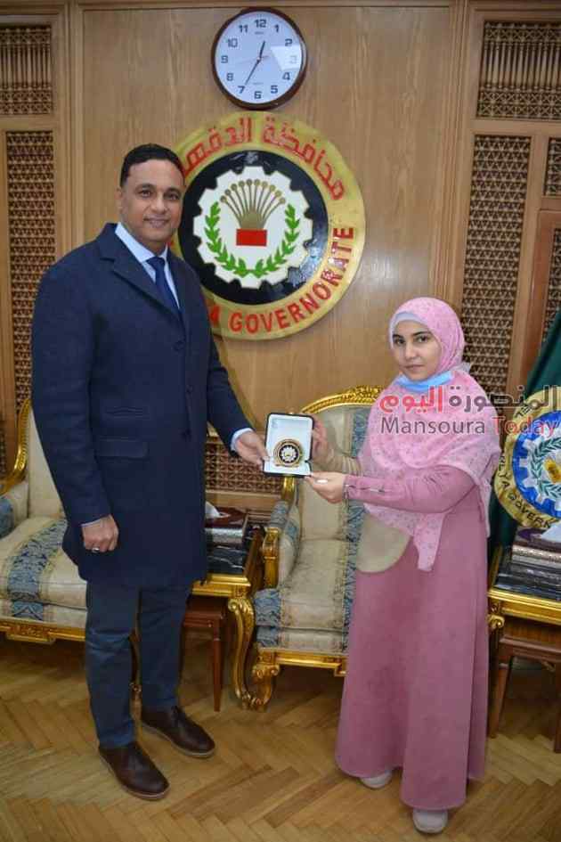 هاجر إبنة قرية ميت طاهر مركز منية النصر بالدقهلية وقد استقبلها محافظ الدقهلية ووالديها بمكتبه بديوان عام المحافظة ومنحها ” شهادة تقدير وميدالية المحافظة لتميزها وتفوقها مؤكدا ان الدقهلية دائما في المقدمة انجبت ومازالت تنجب لمصر والعالم الأعلام في كافة المجالات العلمية والادبية والفكرية والثقافية والدينية.