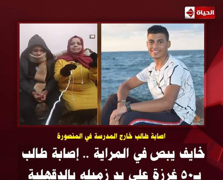 لم يكن يتوقع أن ينتظره الطالب بالخارج بعد انتهاء الإمتحان، إذ فوجئ بشخص ما يمسكه من الخلف ليحكم القبض عليه وأخذه للخارج: «قالي أنا هعرفك إزاي تزعل ابن خالتي، وفجأة لقيت زميلي ماسك الكتر على وشي ويعورني، محستش بعدها بحاجة»، ليفاجأ الطلاب على باب المدرسة بالمحادثة أمام أعينهم، حاولوا دفع «أحمد» بعيداً عن الآخر، الذي حاول مواصلة التعدي على المجني عليه، وكنه تمكن من حماية باقي أنحاء جسمه، بينما تمكن الآخر من إصابته بجرح قطعي في وجهه.